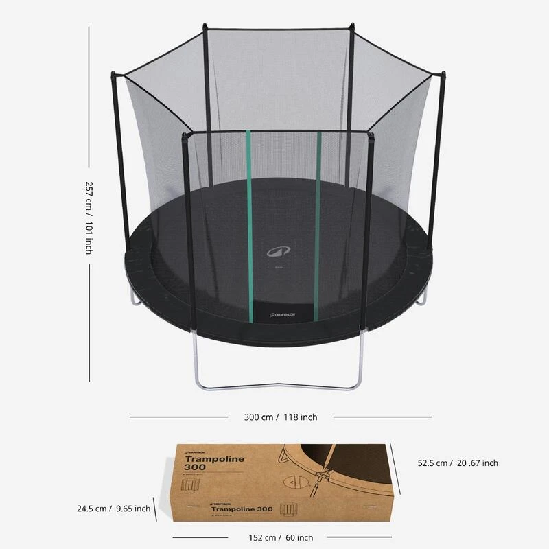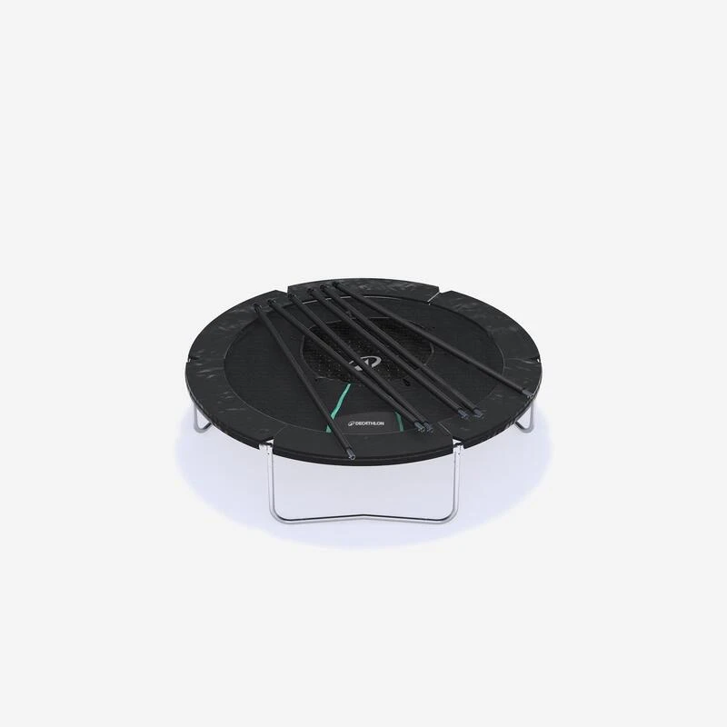N’hésitez pas à rabattre vos poteaux et couvrir votre trampoline avec sa bâche de protection 300 (vendue séparément) pour le protéger des salissures, des feuilles et des intempéries.